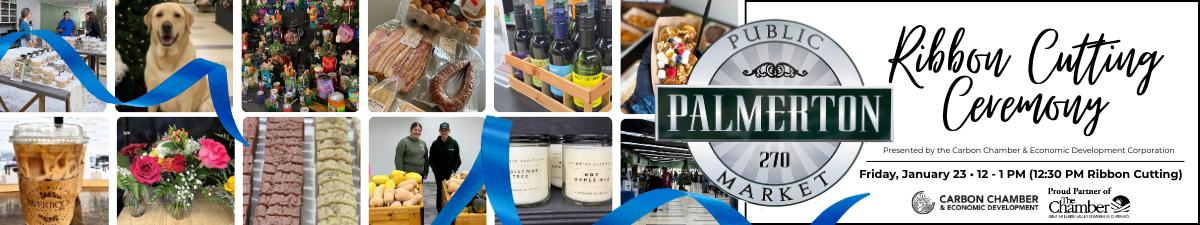 Presented by the Carbon Chamber & Economic Development Corporation, proud partner of the Greater Lehigh Valley Chamber of Commerce, you're invited to celebrate the official ribbon cutting of one of Carbon County's most exciting new community destinations - The Palmerton Public Market! Join us on Friday, January 23 from 12-1 PM (Ribbon Cutting at 12:30 PM) as we welcome this new business to downtown Palmerton.